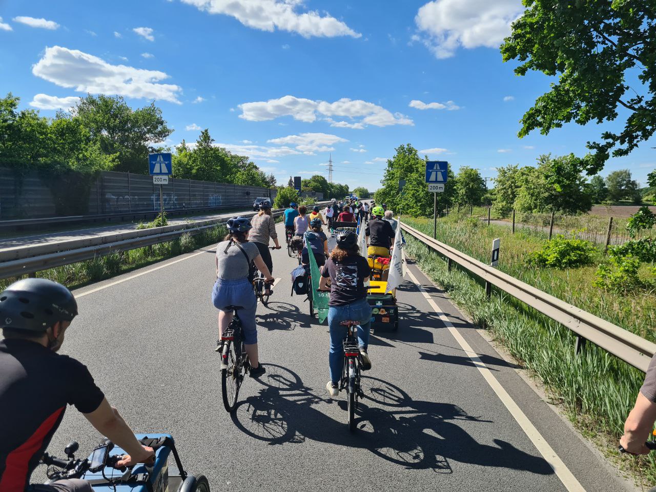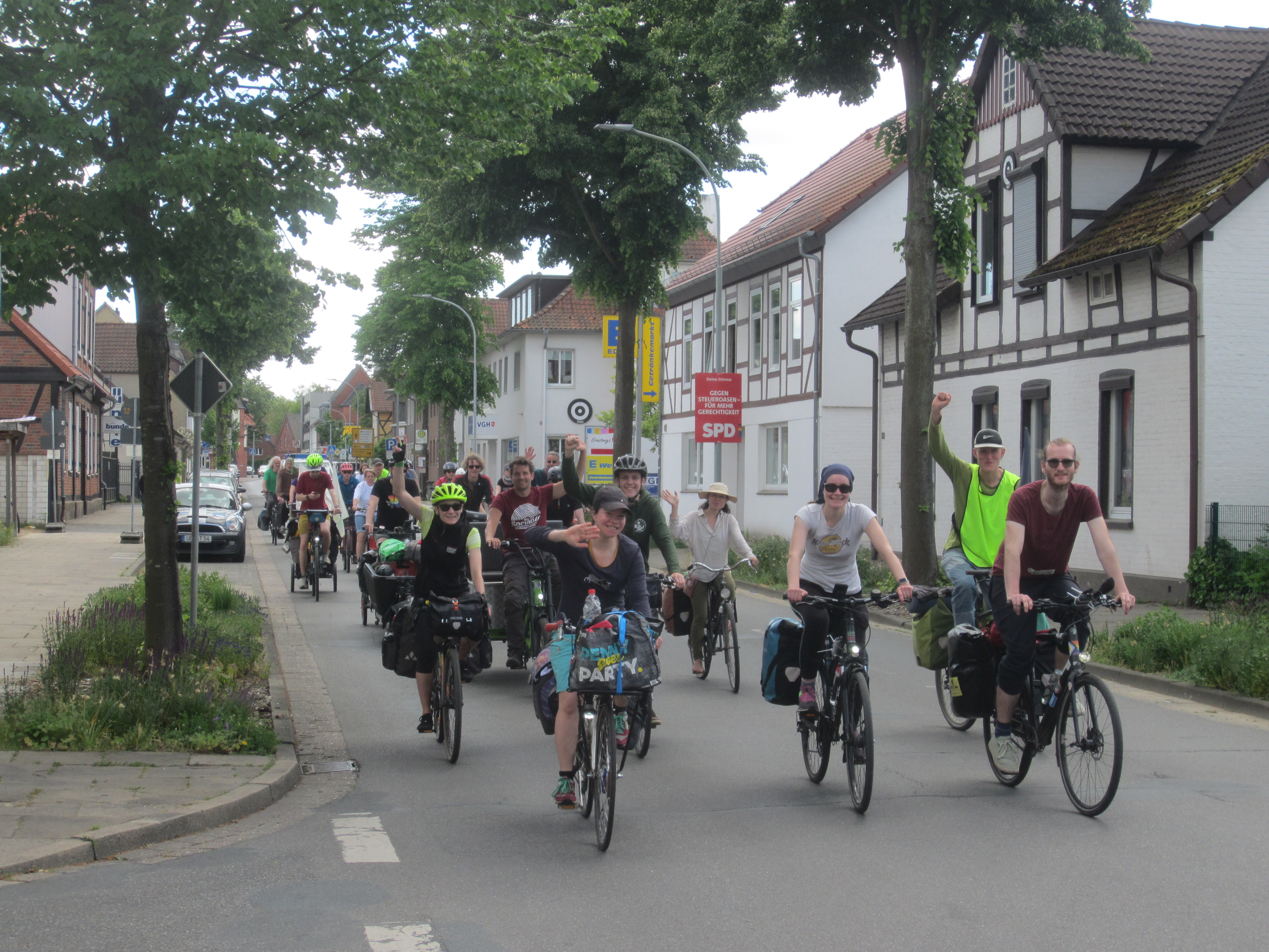 Am Sonntag gegen 16 Uhr kam die Radgruppe, die am Freitag in Wolfsburg gestartet ist, in Lüneburg an. Die Protest- und Vernetzungstour fuhr ca. 140 Kilometer entlang der geplanten Autobahntrasse und hat Zwischenstopps in vielen Orten auf der Strecke gemacht. Unterwegs haben die Fahrradfahrenden weitere Aktive gegen die A39 getroffen und auch von vielen Ortsansässigen Zuspruch erfahren.