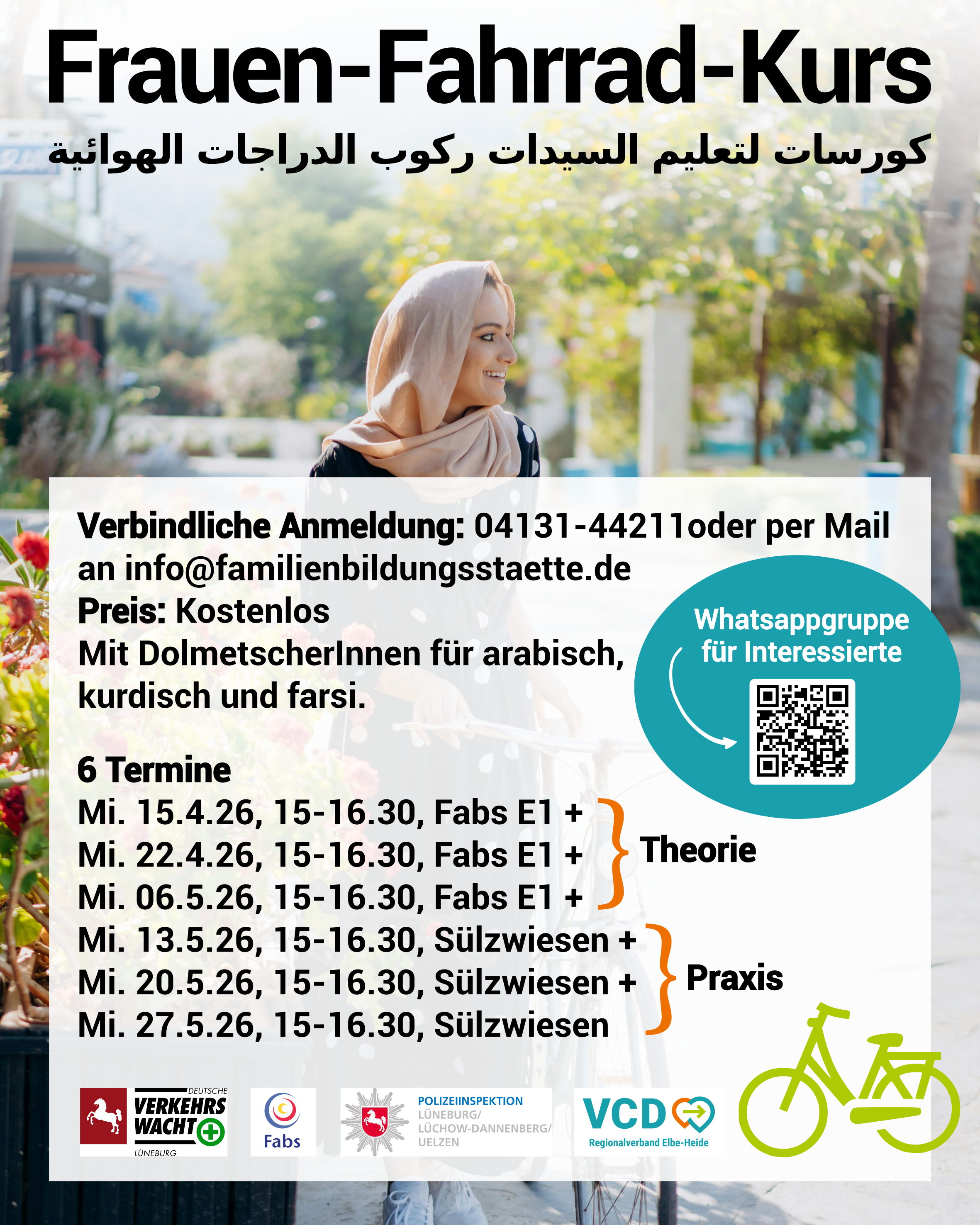 Link zum Kurs: https://familienbildungsstaette.de/programm/kurs/Frauen-lernen-Fahrrad-fahren-in-Lueneburg/MI25-24