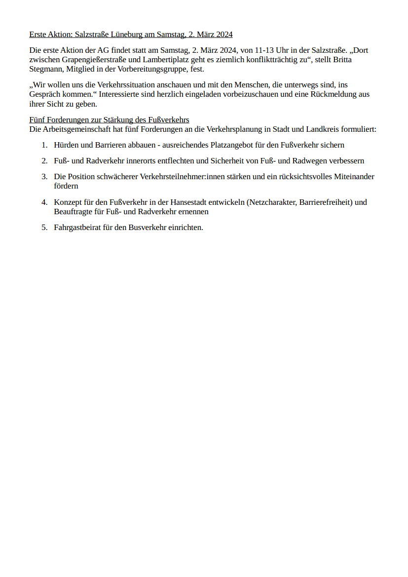 Erste Aktion: Salzstraße Lüneburg am Samstag, 2. März 2024