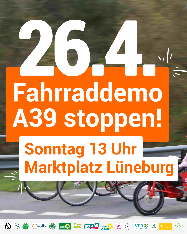 • Fahrraddemo 26.4. um 13 Uhr am Marktplatz Lüneburg (wir starten pünktlich um 13:30).