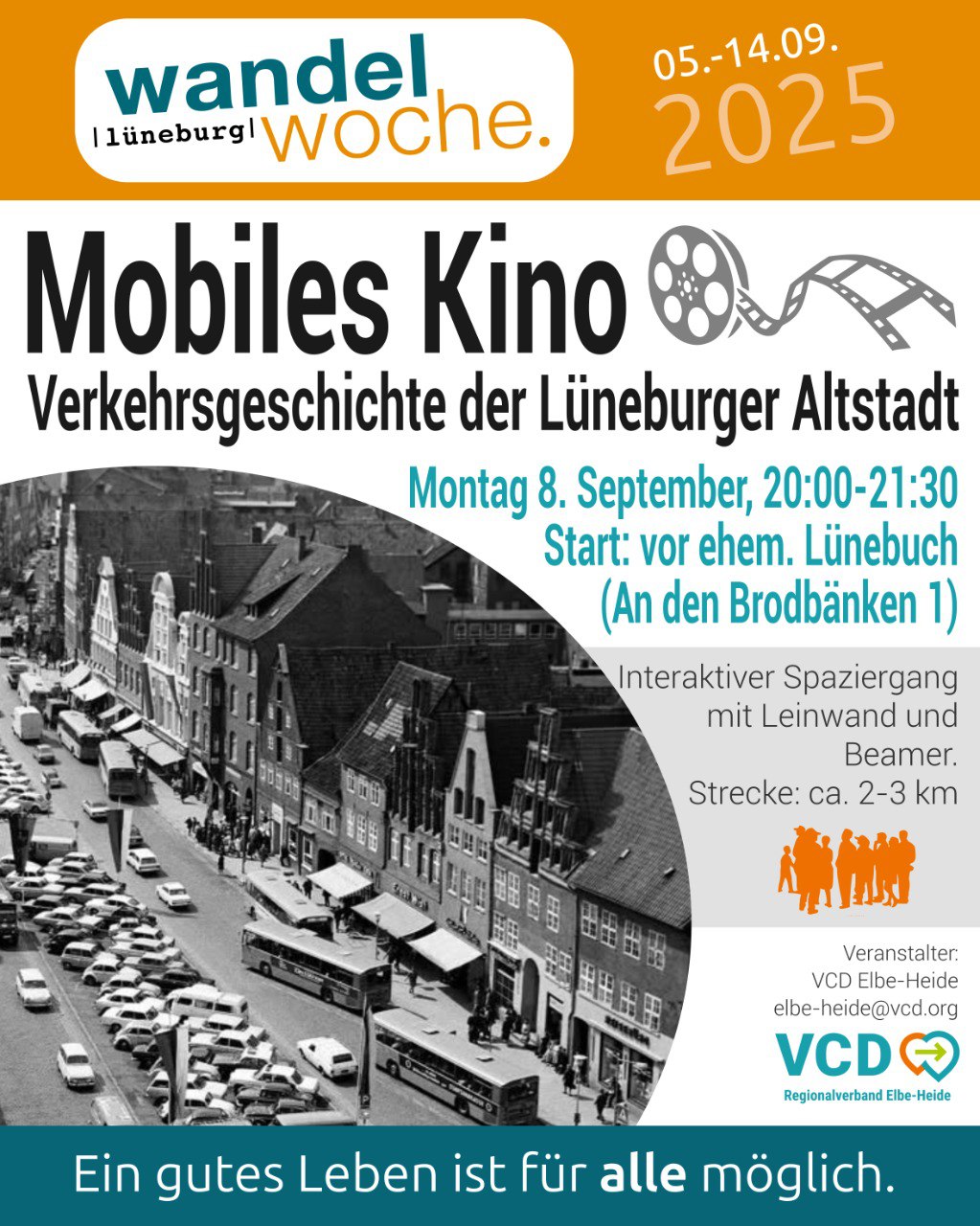 In einem interaktiven Kinospaziergang – unterwegs mit Leinwand und Beamer – erkunden wir die Verkehrsgeschichte der Lüneburger Altstadt. Dabei wollen wir ins Gespräch kommen: was macht für uns eine lebenswerte Stadt aus? mehr
