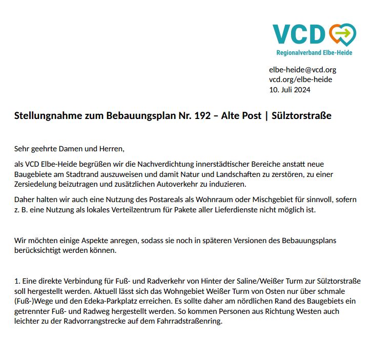Wir begrüßen die Nachverdichtung innerstädtischer Bereiche anstatt neue Baugebiete am Stadtrand auszuweisen und damit Natur und Landschaften zu zerstören, zu einer Zersiedelung beizutragen und zusätzlichen Autoverkehr zu induzieren. Wir möchten einige Aspekte anregen, sodass sie noch in späteren Versionen des Bebauungsplans berücksichtigt werden können. mehr