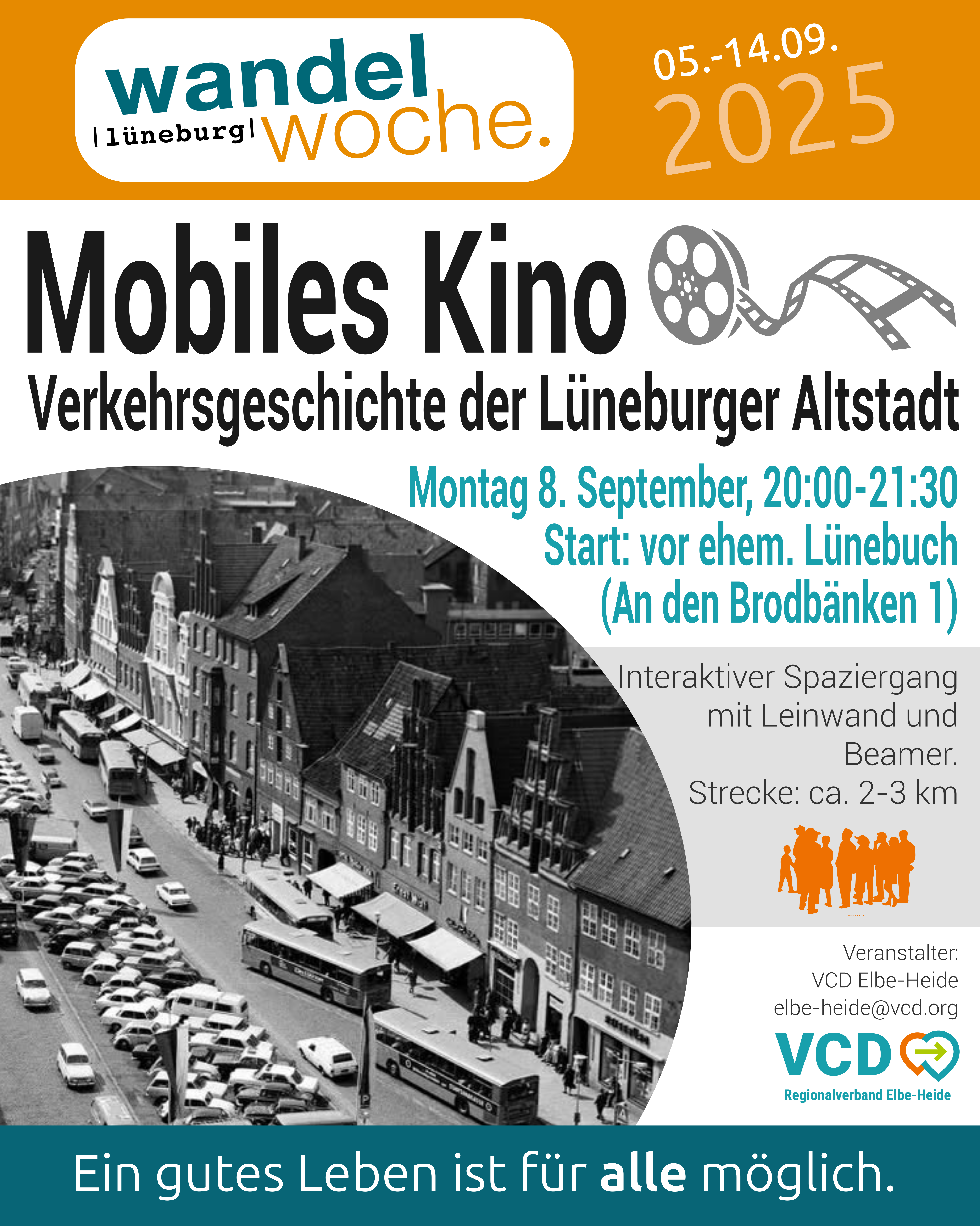 In einem interaktiven Kinospaziergang – unterwegs mit Leinwand und Beamer – erkunden wir die Verkehrsgeschichte der Lüneburger Altstadt. Dabei wollen wir ins Gespräch kommen: was macht für uns eine lebenswerte Stadt aus?