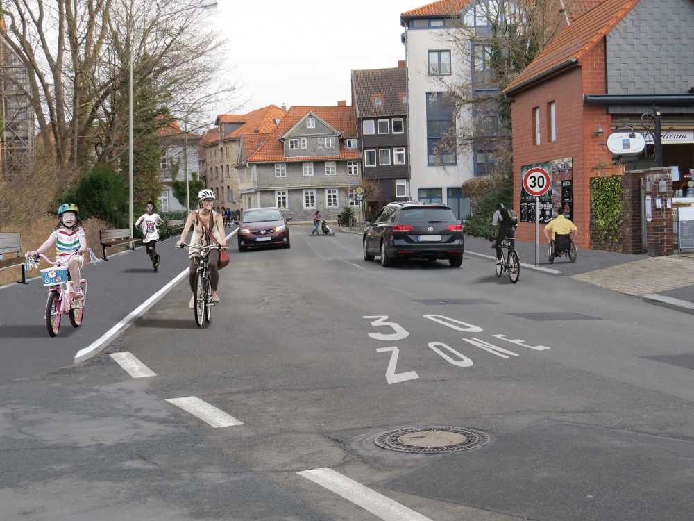 Die Situation am Schiffwall (unweit von der Fußgängerzone) ist wegen der vielen parkenden Autos insbesondere für Fußgänger*innen sehr unbefriedigend. Sie fühlen sich sehr unsicher beim Begehen und Überqueren. Eltern haben Angst um ihre Kinder. Der VCD hat überlegt, wie eine Umgestaltung aussehen könnte.